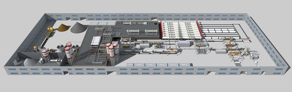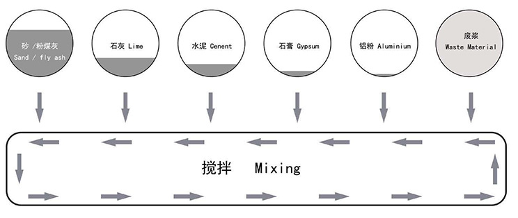 料漿、膠結(jié)料、石膏和鋁粉都分別通過(guò)相應(yīng)自動(dòng)計(jì)量稱(chēng)計(jì)量,后在攪拌機(jī)內(nèi)高速攪拌,澆注到模箱后進(jìn)行氣泡梳理。整個(gè)體系由 PLC 系統(tǒng)進(jìn)行自動(dòng)控制,保證工序的精確和高效。