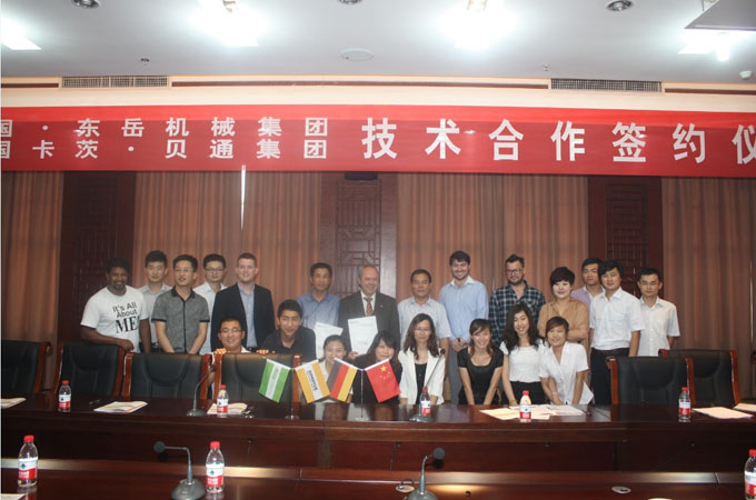6月17日,在沂南縣智圣湯泉舉行中國東岳機(jī)械集團(tuán)與德國卡茨·貝通集團(tuán)技術(shù)合作簽約儀式,標(biāo)志這東岳機(jī)械集團(tuán)引進(jìn)德國加氣混凝土設(shè)備技術(shù)取得實(shí)質(zhì)性進(jìn)展。出席此次加氣混凝土設(shè)備技術(shù)合作簽約儀式的領(lǐng)導(dǎo)有臨沂市人大常委會(huì)副主任馮安、市政府副市長馬崑、市政協(xié)副主席劉繼雙,縣領(lǐng)導(dǎo)劉淑秀、鞠艷峰、黃寶傳、吳昌力、唐音波、葛繼勇、王富余、劉振奎、張德新、蔣學(xué)華、王景良出席簽約儀式。